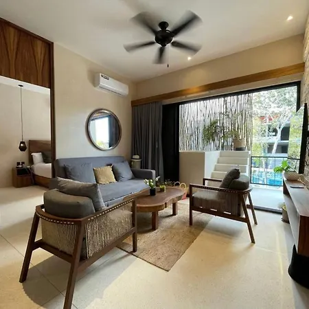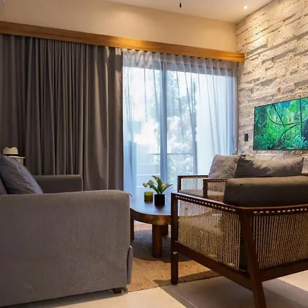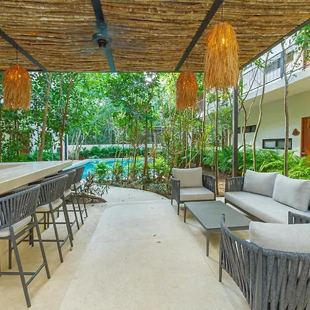 Le domicile de 46 m² est niché à environ 10 minutes en voiture des Ruines maya de Tulum.